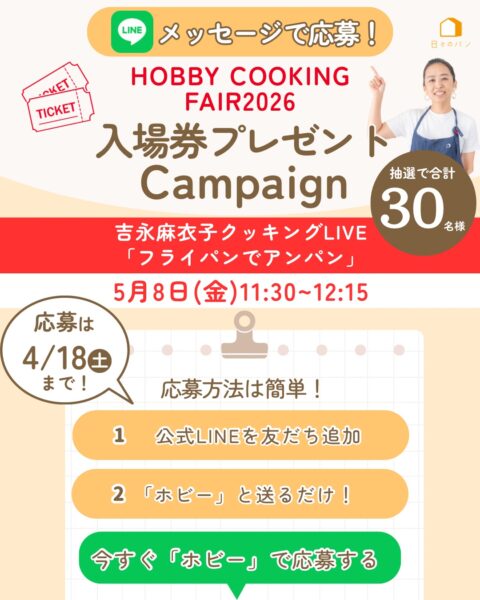 『麻衣子のMy粉』でパンを焼いてInstagramに投稿しよう! 毎月吉永麻衣子サイン入りレシピ本をプレゼント。 詳しくは画像をクリック。