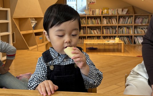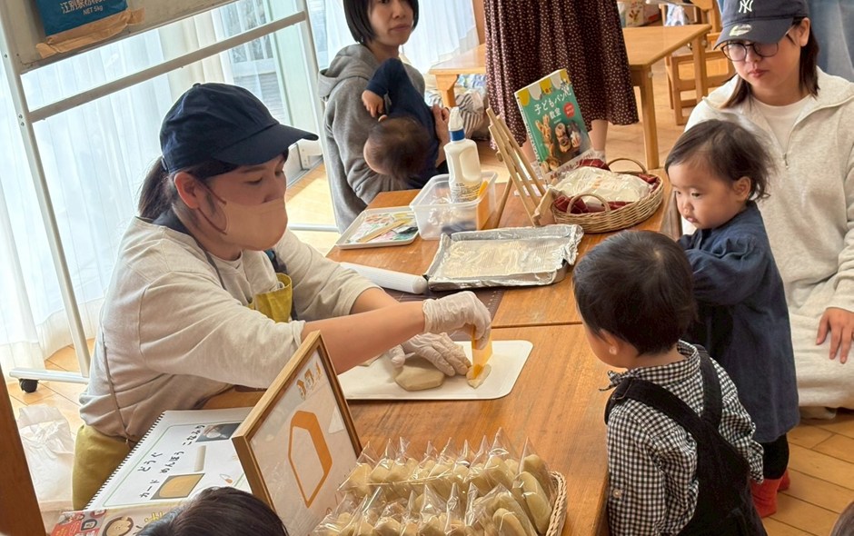 - 保育園の中にある、子育て中の方とお子さんが利用できる「子育てひろば」というお部屋での開催でした。子育ては喜びや楽しさでいっぱいだけれど、苦労やため息をつきたくなることもしばしばだと思います。子ども優先の日々の中で、ママにも充実して満たされる時間があったらいいな・・という思いに、日々のパンのパン作りはとてもぴったりだと思っています。昨年、今年と来ていただいた講師の方が、子どもたちやママたちにとても寄り添ってくださる素敵な方なので、そこも継続したいと思う理由です。とても丁寧で、保育園や受講者の方に対しての事前の配慮がすばらしかったです。