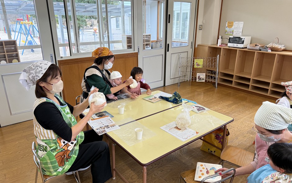 - 子育て支援での開催でした。小さなお子様も保護者様も楽しくパン生地作りができました。