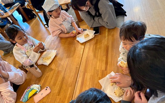 - 今回開催させていただき、親子で一緒にパンを作るといった経験が、子ども達も楽しめることはもちろん、日々お仕事や育児に大変な保護者の方の息抜きの場ともなるなと感じました。また、「簡単に作る事ができる」を知るだけでもご家庭で休みの日の過ごし方のひとつを提案できたり、親子のコミュニケーションが広がるきっかけ作りができると感じました。焼きたてのパンの香りがしあわせ度をアップしてくれました!