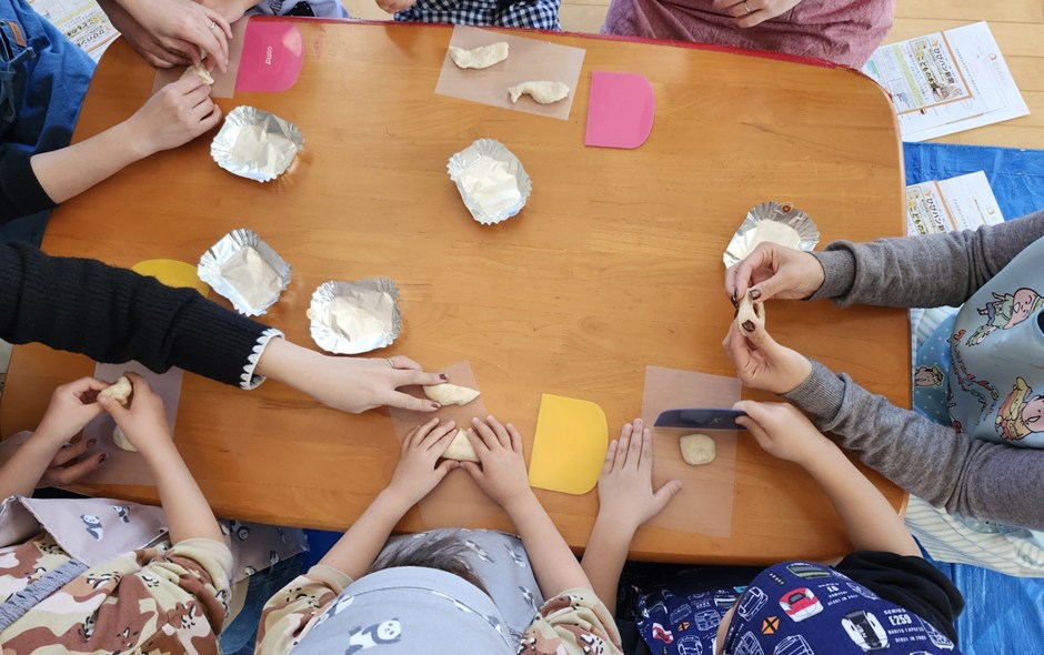 - 親子パン作り教室を楽しく実施することができました。保護者の方からは、家でも作ってみたいとの感想がありました。