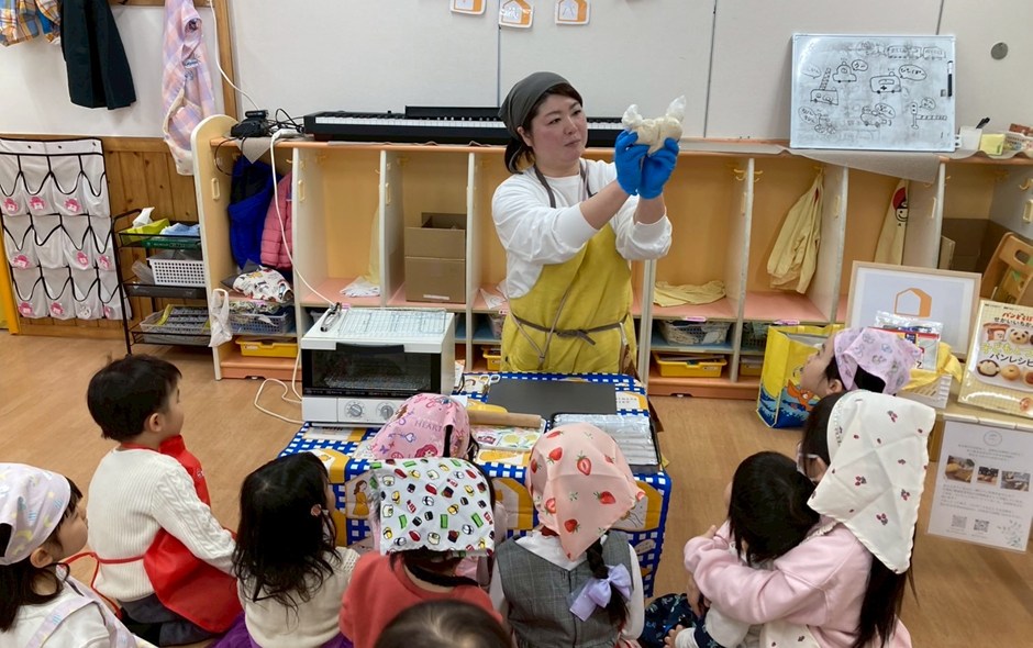• 0歳から小学生のお子さま、多くの保護者様にもご参加いただき楽しく開催することが出来ました。お子さまも保護者様も一緒に袋をフリフリして笑い合っているのが印象的でした。「こんなに簡単にパンが焼けるなんてビックリしました!」と声を掛けてくれ、嬉しかったです。これから、お家でもパン作りを楽しんでください。