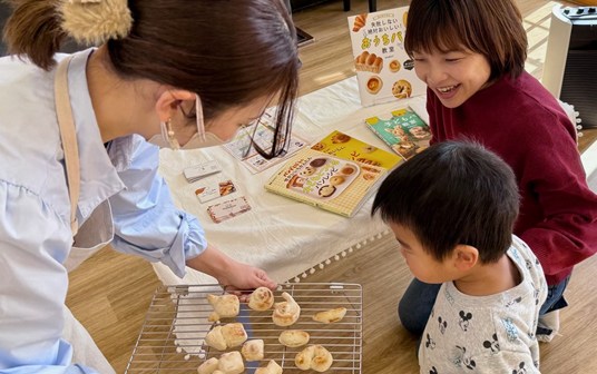 - デモンストレーションがあることで、パンが出来上がるまでの工程を目の前で見ることができ、こどもたちも興味津々でした。成形のところではこどもたちからのリクエストを聞いていただき、とても嬉しそうでした。赤ちゃんから3歳までの動きのあるお子さんとも一緒にできる活動で手軽にできて良かったです。「早速、家に帰って焼き上げます。」「またこうゆうイベントをやってほしい。」と嬉しい声をたくさんいただけました。保護者の方からの希望もあり、職員からも好評でした。