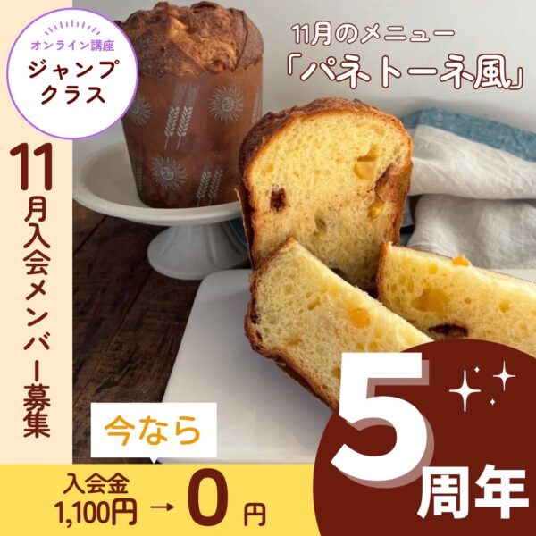 ★祝5周年キャンペーン★おうちで本格パン講座ジャンプクラス11月レッスン募集/パネトーネ風/マカロン(おまけレシピ)