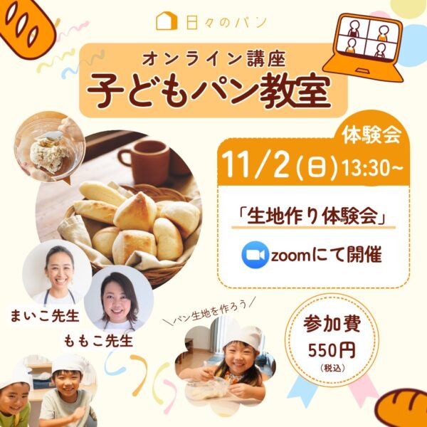 【体験会のお知らせ】日々のパンのオンライン講座「子どもパン教室」がスタートします!!「家族の笑顔から世界を元気に」をお子様と実現!