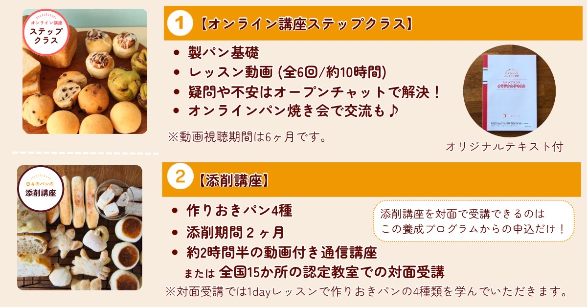 ②添削講座の対面受講は全国15か所の認定教室で、ベテラン講師からの1day対面レッスンが受けられます。実際のパンを食べながら学べ、活動前に講師の雰囲気を肌で感じられるので、自信にもつながりますよ。