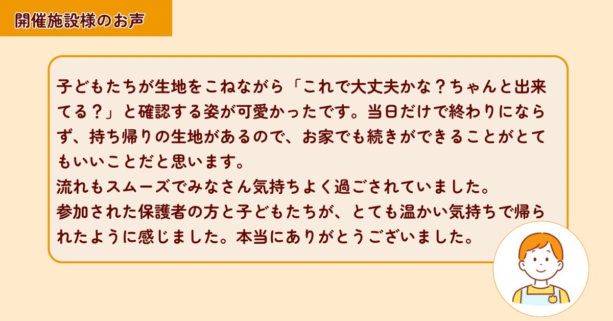 開催してくださる施設様、参加してとびきりの笑顔をみせてくれるお子さんやおうちの方、みなさんに感謝です!