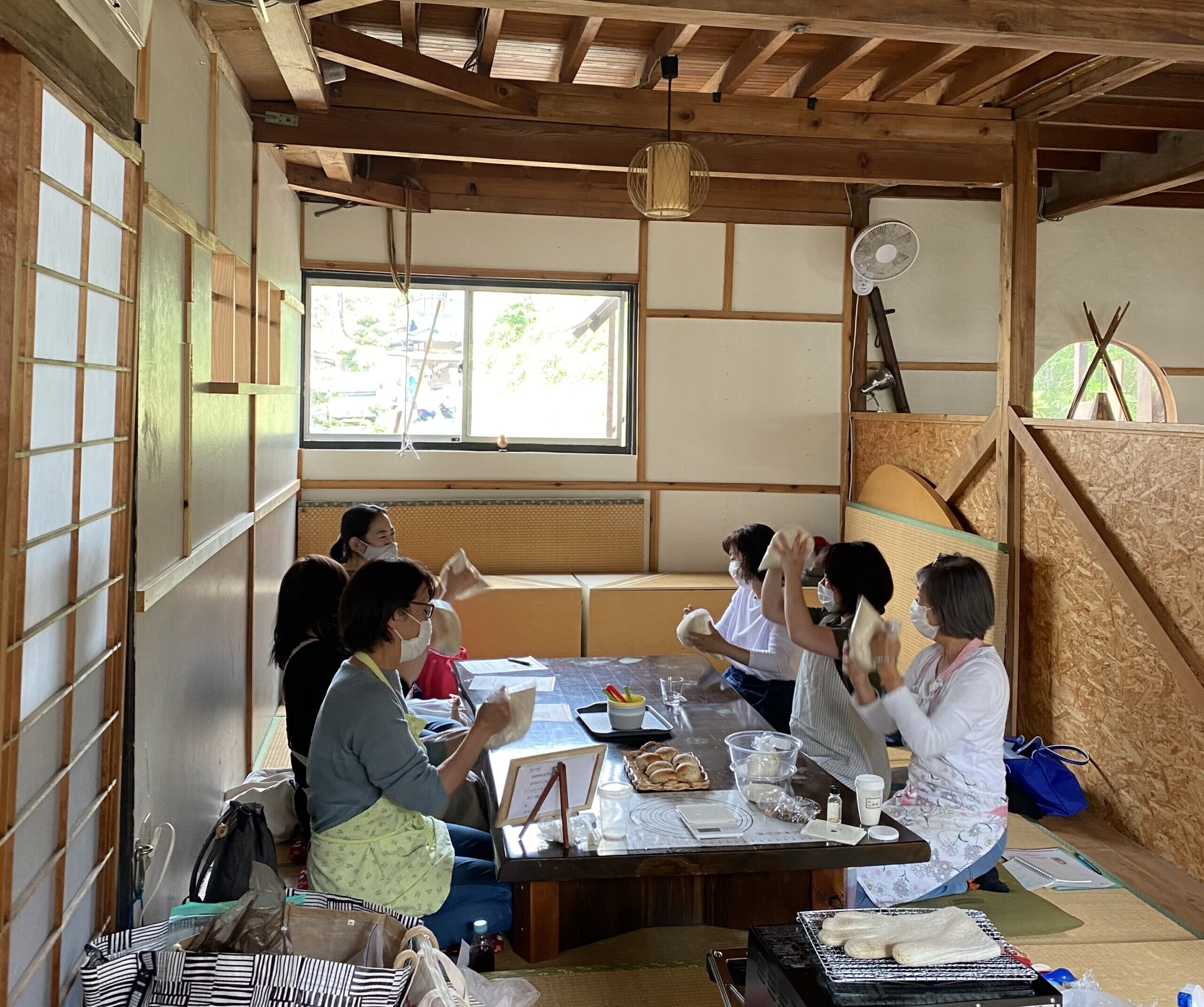 ▲田舎に来たようなホッとする空間でお座敷パン教室。参加された皆さんどうしで交流できることが喜ばれます。パン作りって不思議と人が集まって来るんですよね。