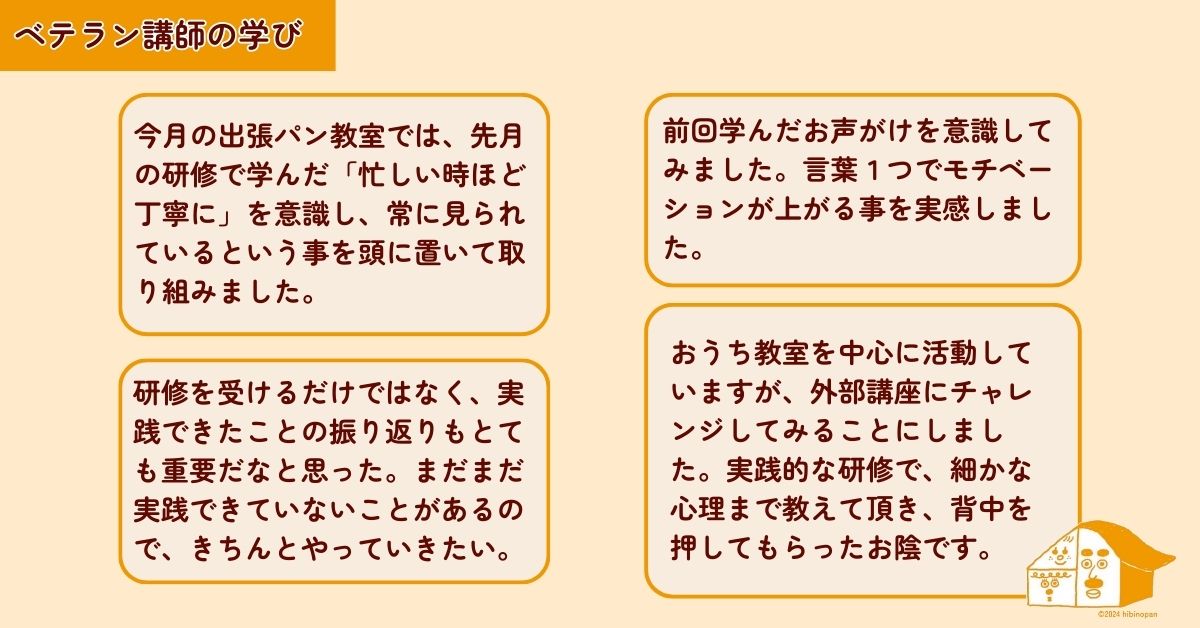 現役日々パン先生だからこそ、現場のことも講師の気持ちもよくわかる。常に寄り添ってくれる優しさに、講師も信頼を寄せています。