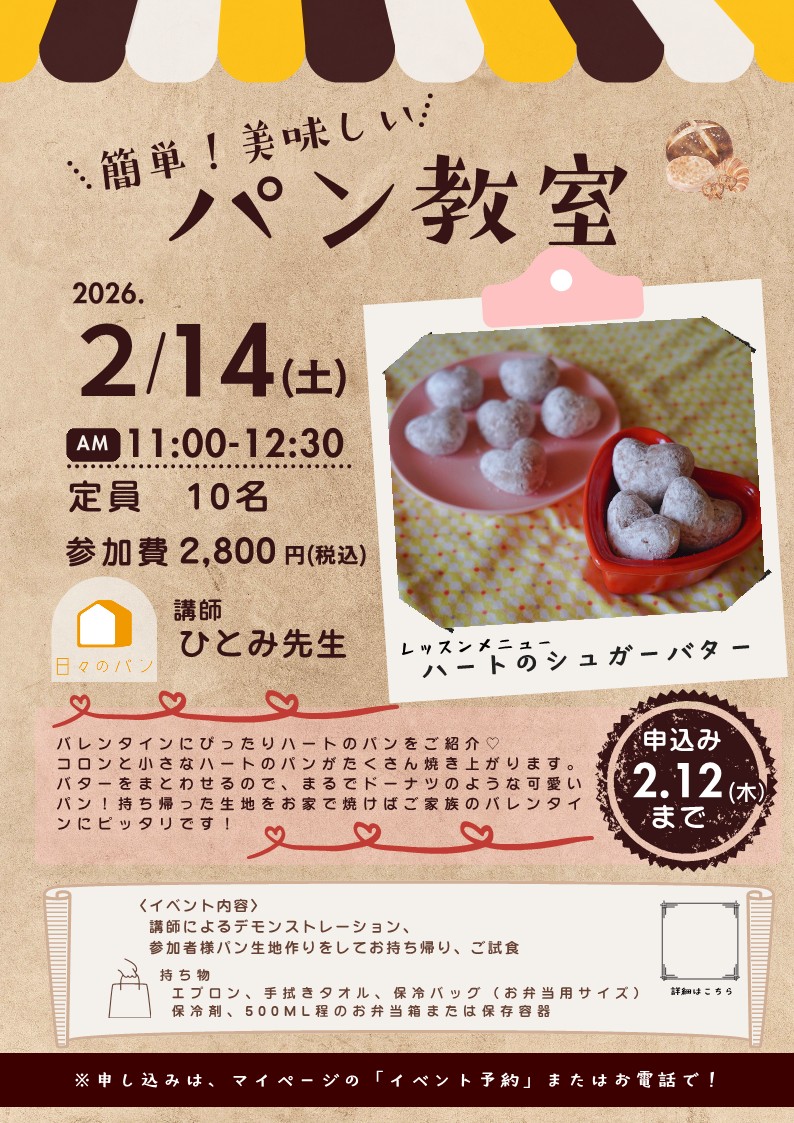 日々のパンは各地で簡単なパン作りをお伝えしています!