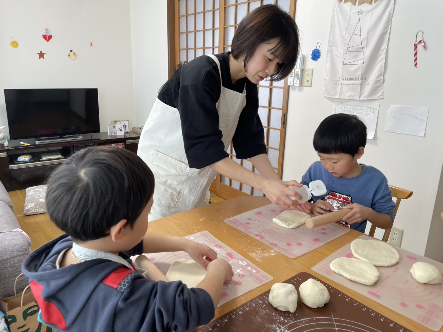 パン教室があると知ると、今日はどんな人が来るのー?ちゃんとできたー?と息子たちが気に掛けてくれたり、温かく見守っていてくれています!自宅でパン教室をしているので、家族の協力と理解のおかげで成り立っているなと感じています。